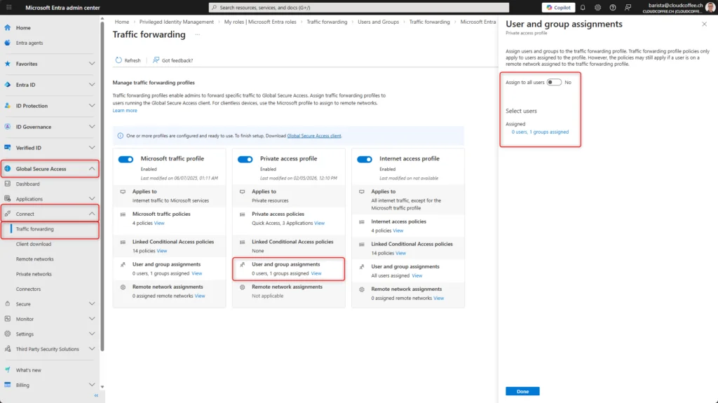 - Navigation : Global Secure Access > Connect > Client download