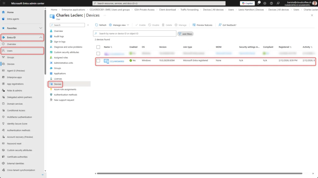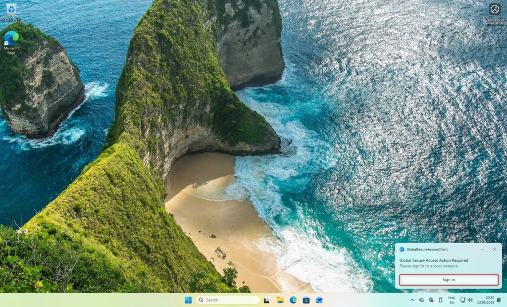 Le Global Secure Access Client version 2.26.108 ou ultérieure est indispensable. Cette version apporte le support natif des appareils enregistrés et garantit une expérience utilisateur optimale.